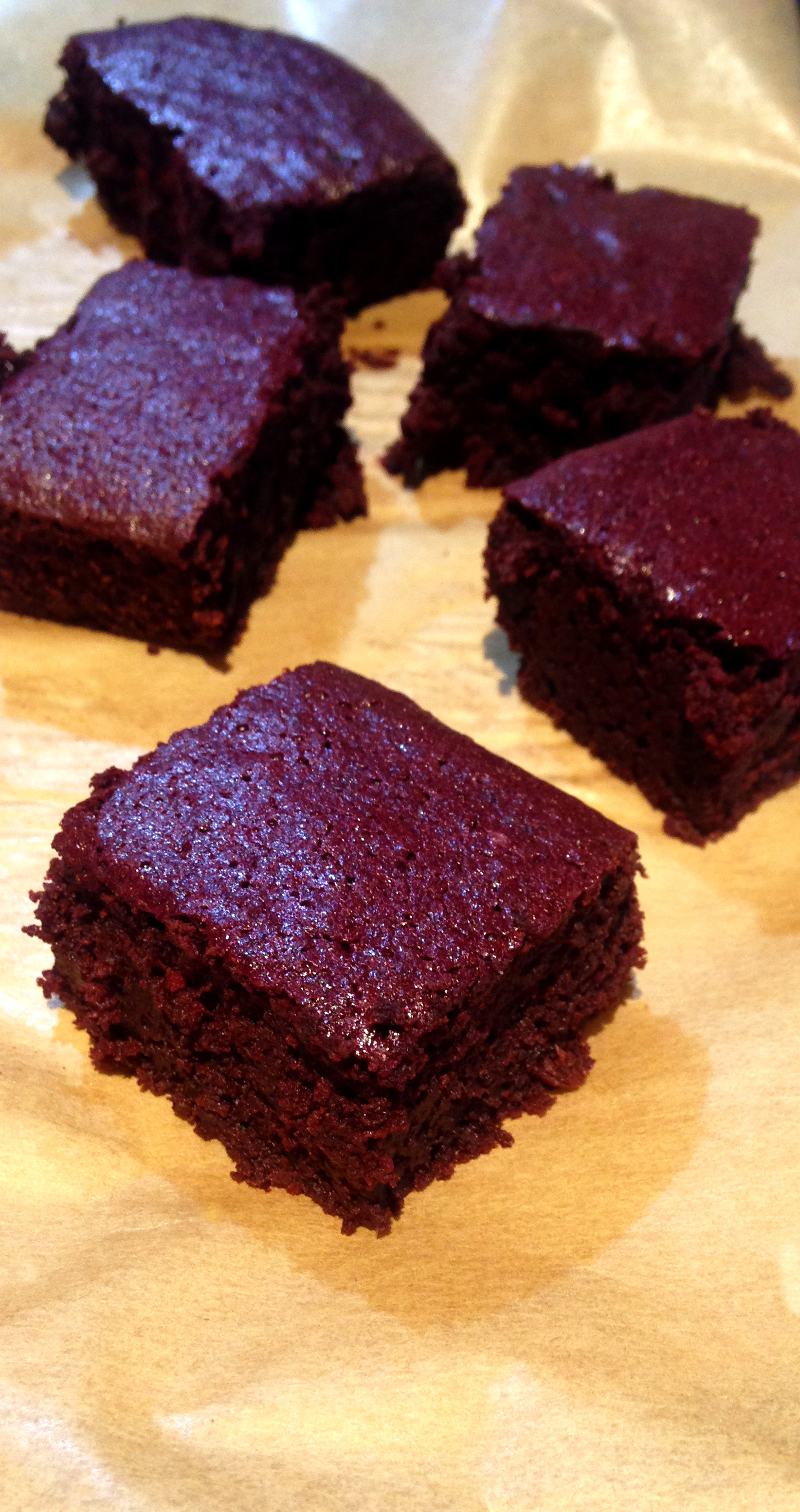 - Pre-Heat the oven to 180C/160C fan/gas 4. While the Beetroot steams, butter and line a 20 x 30cm tray bake or small roasting tin. Roughly break the chocolate and cut the butter into cubes and pop into a blender with the vanilla. Once the Beetroot is tender, add this to the blender and mix it up until you have a smooth mixture. (The heat from the Beetroot will melt the butter and chocolate)