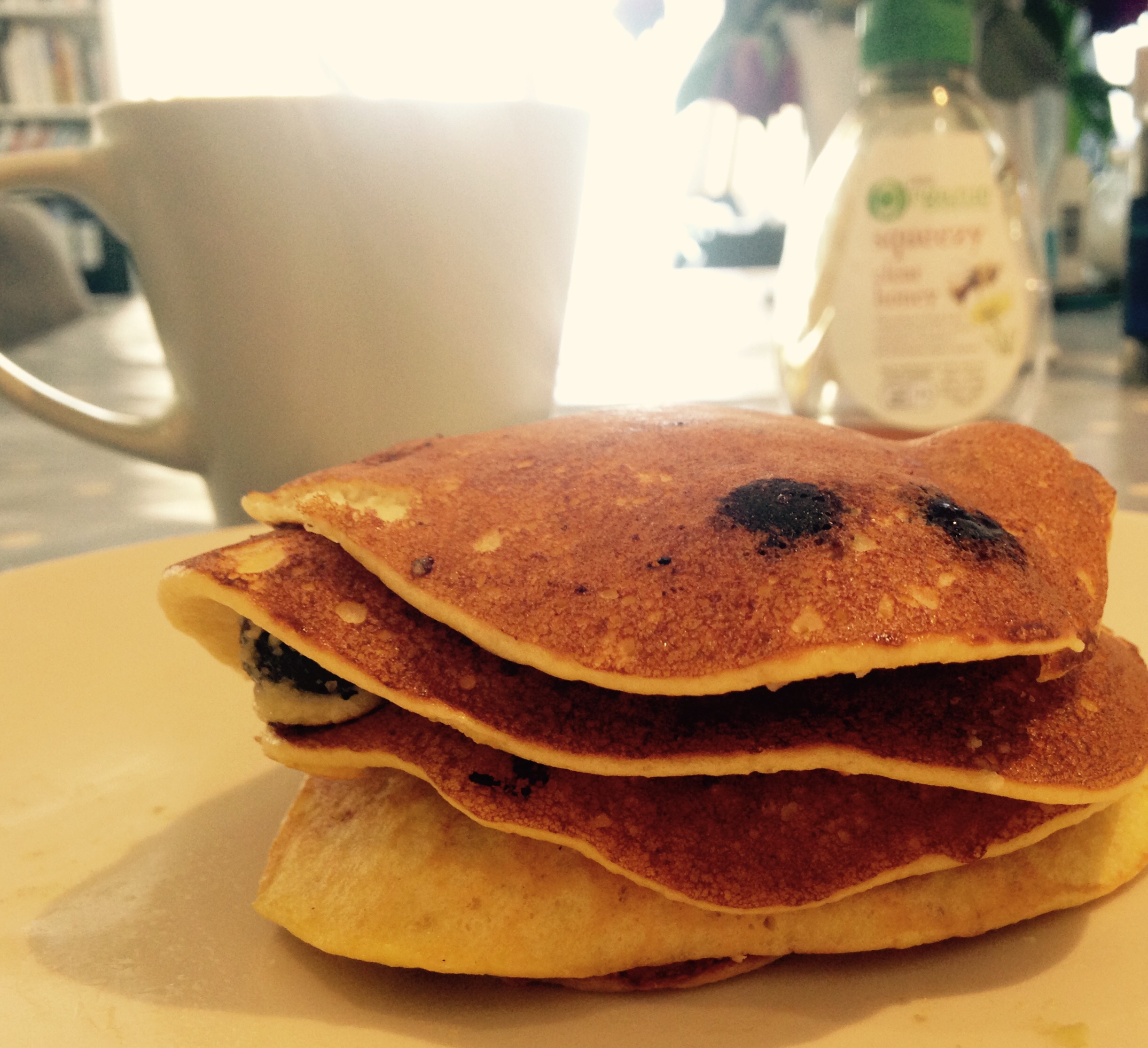 To make these slightly more savoury don’t add the blueberries, smash up some avacado and cook up some bacon as a topping to enjoy..